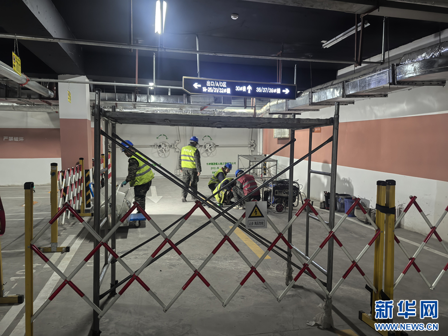 城北区绿地国际花都四期充电桩安装现场。城北区住宅楼院(物业)服务中心供图。