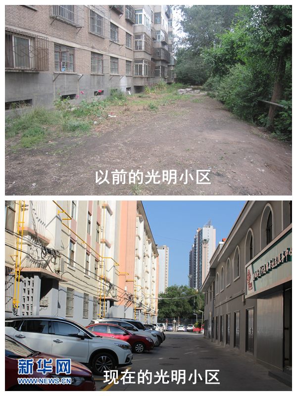 (拼版照片)新旧光明小区对比。城北区住宅楼院(物业)服务中心供图。